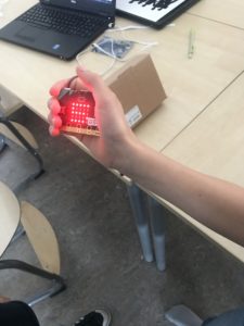 Alla eleverna arbetade två och två – första uppgiften blev att skapa en namnbricka. Eleverna gjorde succé och på nolltid hade alla eleverna skapat sina egna namnbrickor. Lektionen rullade på och vi fokuserade mycket på variabler och hur de kan ändras för att avslutningsvis kunna bygga en hemmagjord tärning – nästa tillfälle på plats kommer vi att göra om tärningen så att eleverna alltid kan slå en sexa!